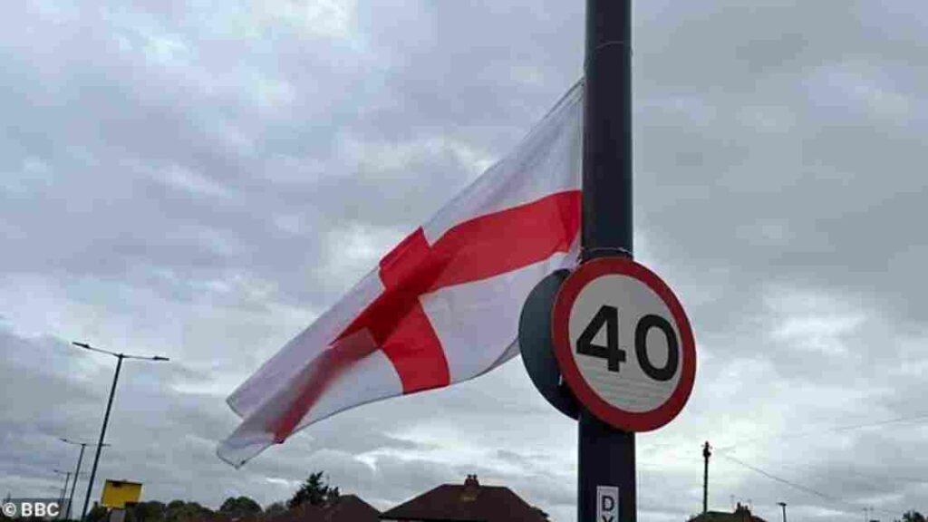 The grassroots online movement “Operation Raise the Colours” has led communities across England—including Bradford, Newcastle, Norwich, and the Isle of Wight—to hang flags in their streets, often in defiance of council restrictions.
